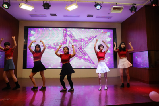 一片歡呼聲中,帷幕徐徐拉開,舞蹈《shake that brass 》轟然開場!來自人力資源部、財務部、綜合管理部的五位美女首先為大家表演了精彩動感的舞蹈,晚會在歡快的舞蹈中震撼開啟,讓人眼前一亮!