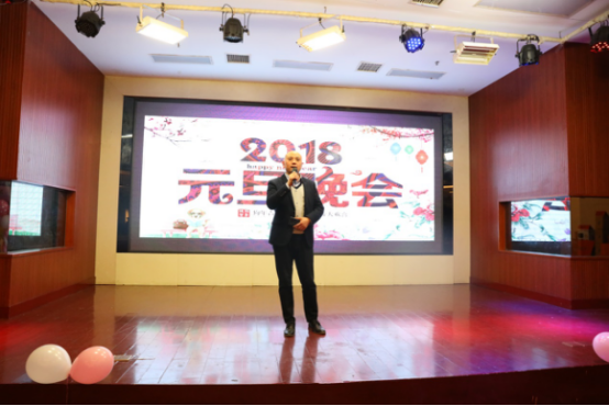 晚會開始,公司常務副總兼制造技術部經理羅大志先生代表公司全體領導致予新年的致辭“時光荏苒,歲月如梭,2017年即將過去,在這辭舊迎新的時刻,公司真誠地祝愿各位新年快樂!萬事如意!百尺竿頭,更進一步!