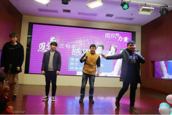 接下來是由我公司制造技術部表演的三句小品《感恩公司》,以幽默的話語為我們詮釋感恩的力量。生活需要一顆感恩的心來創造,一顆感恩的心需要生活來滋養。在即將過去的2017年感謝父母,把我們養育成人. 感謝在座的各位前輩、師傅們。感謝我們的公司,給予我們一個發展的平臺,感謝公司培養的鍛煉,讓我們在人生的道路上越走越遠。